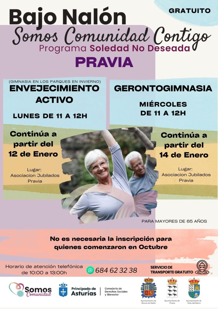 Continúan las actividades de Envejecimiento Activo y Gerontogimnasia, dirigidas a personas mayores de 65 años, dentro del programa Soledad No Deseada.
